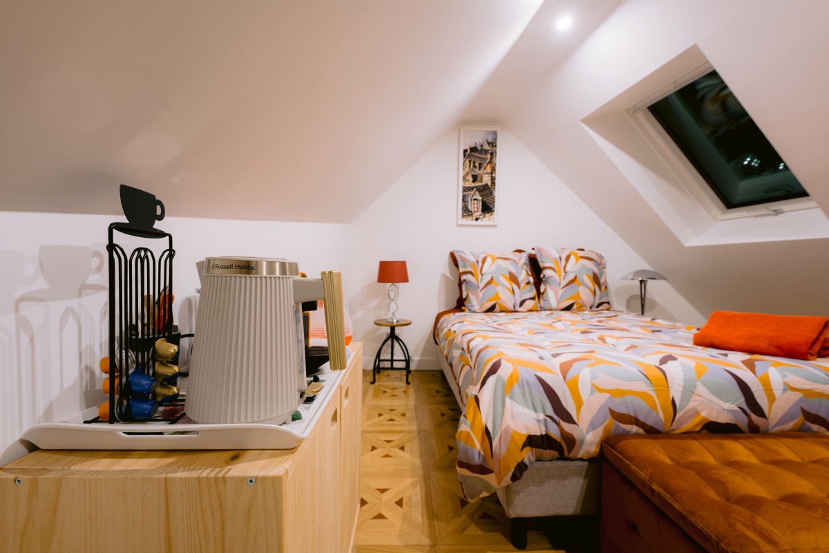 Cocon intimiste avec immense verrière offrant une vue spectaculaire sur la Seine et un paysage digne des Impressionnistes. Jacuzzi 5 places face au fleuve, chambre cocooning pour couple, salle de bain esprit SPA et coin petit-déjeuner baigné de lumière. À 5 min de Giverny et 1h de Paris, Rouen ou Versailles. Le refuge idéal pour une escapade romantique où art et nature se rencontrent. Réveillez-vous face aux reflets changeants de la Seine dans un décor digne d'une toile de Monet.